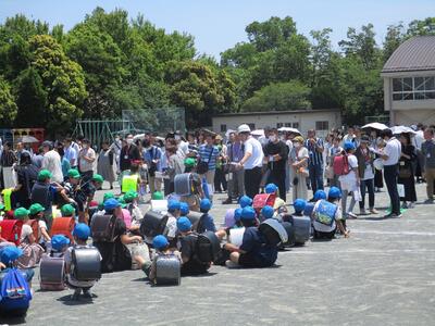 学校公開に合わせ、引き渡し訓練を実施しました。暑い中でしたが、