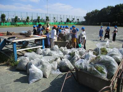 台風の影響を受け延期した親子除草でしたが、多くの保護者の皆様に来校いただき、