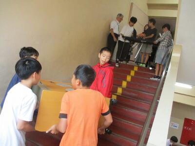 5・6年生が音楽会に向けて体育館に楽器を運んでくれました。いよいよ体育館練習のスタートです。