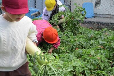だいこん育成 収穫「だいこんとったぞ!」 ブログ 今日の出来事 12/09 パブリック 校長 だいこんを育て、今日ようやく収穫です。並木の畑ですくすくと育っただいこんを児童は楽しそう抜いていました。昇降口で新聞紙に巻き、収穫したものを持って帰ります。種を植えて、収穫します。命を育み、いただく学習をしっかりと学びました。おいしく食べてね!