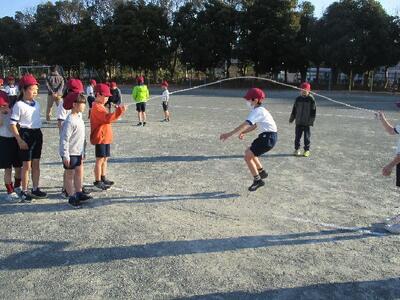体育朝会 みんなで息を合わせて! ブログ 今日の出来事 13:30 パブリック 校長 1月13日の体育朝会では長縄跳びに取り組みました。息を合わせると知らず知らずに声が出てきます。クラスが一つになれる、そんな良さがあります。さあ、どれくらい跳べたかな?