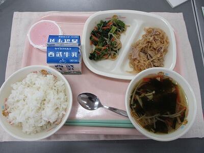 じごなうどん ぎゅうにゅう カレーなんばん だいがくいも(2こ) こまつなのぽんずあえ