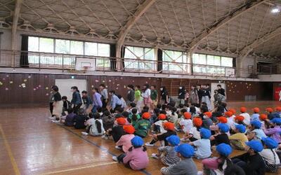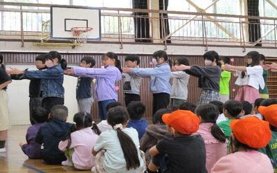 前へならえ! 投稿: 校長 (11:49) 4月21日(火)、体育朝会で集会時の並び方を学びました。全校児童は、体育主任の先生から並び方や「前へならへ」「休め」「右向け右」座り方を6年生をお手本にして学びました 0 -