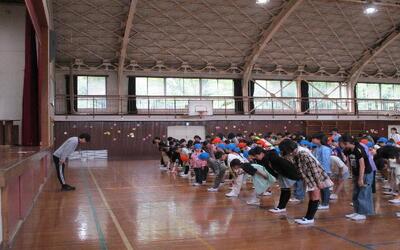 前へならえ! ブログ 11:49 パブリック 校長 4月21日(火)、体育朝会で集会時の並び方を学びました。全校児童は、体育主任の先生から並び方や「前へならへ」「休め」「右向け右」座り方を6年生をお手本にして学びました