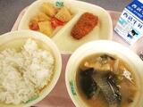 今日から給食開始 牛乳のパッケージも新しくなりました   ごはん 牛乳 とり肉のからあげ キャベツのしおこんぶあえ こまつなのみそしる