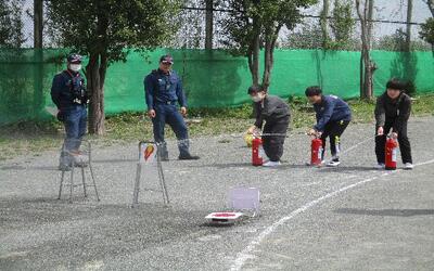 4月14日(火)、今年度初めての避難訓練(地震・火事)で行いました。災害はいつ起きるのかわかりません。そのための訓練です。今日の訓練には消防署の方から水消火訓練の指導を受けて実施しました。「自分でできることをする=自分の命は自分で守る」につながります。よき訓練になりました。